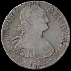 Moneda de Carles IV, 1803. Diàmetre 39,2 mm. Revers. (Wikipèdia)