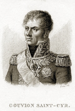 El sitio de Rosas molestó bastante al mariscal Saint-Cyr, que se había hecho la ilusión de que á su marcha desde la Junquera á Barcelona, se le irian rindiendo, sin resistencia notable, todas las plazas fortificadas. Una pequeña ciudadela, un fuerte reducido, y unas trincheras apresuradamente abiertas en aquella villa le habian entretenido un mes en su marcha, que él creyera victoriosa y sin grandes obstáculos. Sentíase mortificado de no poder tomar la plaza de Gerona, pues el emperador le ordenaba que apresurase su ida á Barcelona, bloqueada por las fuerzas del general Vives. El día 5 de Diciembre se pasó revista á su ejército, formando un estado de su fuerza. Estaba compuesta de tres divisiones mandadas por los generales Pino, Souham y Chabot. La división del general Pino que tenia por ayudante al comandante Dembowki, estaba formada por tres brigadas á las órdenes de los generales de esta clase, Mazuchelli, Fontana y Balabio y comprendía los siguientes cuerpos, todos italianos: el 2º ligero, con tres batallones y 1497 hombres; 4º de línea, con tres batallones y 1788 hombres; 1º ligero, con tres batallones y 1469 hombres; 6º de línea con tres batallones y 1955 hombres; un batallón del 7º de línea con 618 hombres; tres escuadrones de cazadores reales, con 535 plazas; y tres escuadrones de dragones, con 506 plazas: total de la división Pino, trece batallones, 6 escuadrones, con 8368 hombres. La división del general Souham, que tenia por ayudante al comandante Ramel, estaba formada por tres brigadas, á las órdenes de los generales de esta clase, Dumoulin, Vergés y Bessières, y comprendía los siguientes cuerpos; el 1º ligero, con tres batallones y 2093 hombres; el regimiento provisional con cuatro batallones y 2484 hombres; el 42º de línea con tres batallones y 2467 hombres; y el 24º de dragones con tres escuadrones y 668 plazas: total de la división Souham, 10 batallones, tres escuadrones, con 7712 plazas. La división del general Chabot, cuyo ayudante era el comandante Guillemet, no contaba con generales de brigada y estaba compuesta de dos cuerpos ó sea, el 2º de línea, napolitano, con dos batallones y 564 hombres, total de la división Chabot, tres batallones con 1988 hombres. Total de las tres divisiones, 26 batallones, 9 escuadrones, con 18.068 plazas. La division Reille no se incluyó en este estado, porque no debía moverse del Empurdán. Avanzó Saint-Cyr con su ejército, procurando desde luego ponerse á la vista de los puntos avanzados de Gerona, para ver si lograba intimidarles ó sorprenderles, y como ni lo uno ni lo otro le fue dable, fuese estendiendo por el bajo Empurdán, tanteando la manera como podría salvar la pequeña cordillera que de los Angeles va á parar al mar, cerca de Calonge, en lo que se mostro por demás indeciso y perplejo. De este movimiento daba noticia el Diario de Gerona del 11 diciendo: "En la madrugada del día nueve pasó una numerosa columna enemiga el rio Fluviá y desde el lugar de Celrá, en donde se hallaba el cuartel general de vanguardia que se recogió luego al valle de Campdurá, se observó que á las 12 del día entró en Mediñá: conservó esta posición hasta el anochecer, alargando sus avanzadas desde la Costa roja hasta la fuente del agua picante, á distancia de media legua del lugar de Sarriá. A las ocho de la noche del mismo día vadeó esta misma columna el río Ter y se posesionó del lugar de Bordils". El paso del rio Ter que se acaba de indicar fue por el vado del mismo pueblo de Mediñá, frente Celrá. El Diario del 12 añadía: "Quando vadeaba el Fluviá la columna que continua posesionada del lugar y llano de Bordils, destacando partidas sueltas por todos los alrededores para saquear los infelices Pueblos de esta parte del Ter: pasó otra columna aquel rio en el mismo día nueve, y entró á las ocho de la noche en la villa de Torroella de Montgrí, apesar de haber experimentado alguna resistencia de parte de nuestros Migueletes y Paysanos. Su fuerza es con corta diferencia la misma de la columna situada en Bordils, que consiste según voces en cinco mil hombres entre infanteria y caballeria. Parece que sigue extendiéndose hasta la comarca de la Villa de La Bisbal. Las calamidades que sufren aquellos pueblos y sus clamores, que ya pronosticamos en el Diario número 137, son los que nos hacen repetir el vivo desconsuelo que tenía entonces este acreditado General é Ilustre Junta de no poder apartar de ellos estos horrores, que con tanta anticipación preveían y no podía precaver. Sin embargo las vivísimas diligencias y actividad características del Excmo. Sr. Marqués de Lazán aliviarán sin duda alguna y pondrán fin á tantos males". El Diario del 13 añadía además: "No hay duda que el enemigo tanía proyectada alguna tentativa contra esta Plaza; en estos días ha hecho diversidad de movimientos á nuestra vista; y en los últimos ha dado bien á entender que sus tropas altaneras son capaces de tener las sabias y enérgicas disposiciones, con que el infatigable General Marqués de Lazán los espera. Quando los franceses observaron las posiciones que habían tomado nuestros defensores, colocados en las alturas, quando desde la Costa roja avistaron una batería, que este celoso General mandó colocar á corta distancia del Pont mayor camino de La Bisbal, que les amenazaba su exterminio en todas direcciones, quando se persuadieron del orden y serenidad, con que se les salió á recibir, y que si daban un paso mas hacia adelante, tendrían un arrepentimiento inútil; lo dieron retrógado, volviéndose hacia Báscara, é inclinándose á Verges, y á La Bisbal, en donde entraron tres mil el día once. "Segun los avisos que tenemos, se han decidido últimamente á reunirse en número de nueve mil hombres, indicando el designio de socorrer á Barcelona. Para esto han pasado por el otro lado de la cordillera de Nuestra Señora de los Angeles, divididos en dos columnas; la una ha