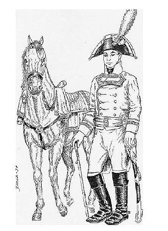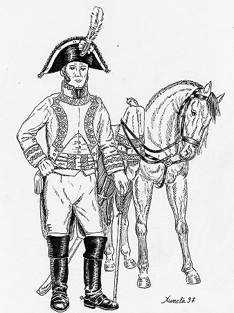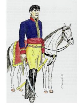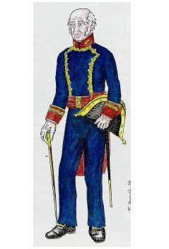 Uniformes de la Guerra del Francès a Girona. Mariscal de camp amb uniforme de campanya, 1809 (Mariano Alvarez de Castro). Dibuix de Fèlix Xunclà publicats al Butlletí nº 2 de "El Baluard", 1997.