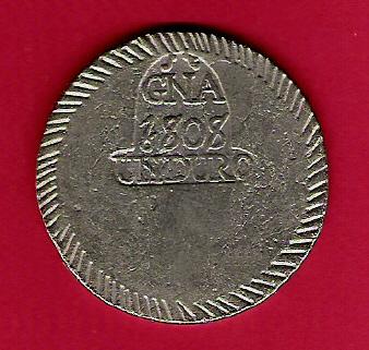 Anvers i revers d'una moneda obsidional emesa a Girona durant els setges. Correspon a un valor d'un duro. 1808. Col·lecció particular, Girona.