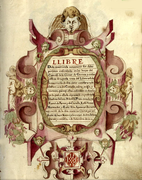 A Girona l'extracció anual es feia el dia de Cap d’Any, i s'escullia un cert nombre de jurats o regidors municipals: sis, de bon començament, i quatre únicament des de la reforma municipal del 1576, que es va justificar per raons d’operativitat, i segons un sistema de rotació estamental. No tots els jurats tenien el mateix rang, i, de fet, el lloc de jurat en cap, l’encarnació màxima del govern municipal, era una exclusiva dels candidats o matriculats de la mà major. Aquesta juraderia de quatre membres convocava el Consell General, format per una setantena d’individus de les tres mans, cadascuna amb un nombre de representants força semblant: 25 llocs per a les mans major i mitjana, i 24 per a la menor, i que es renovaven també anualment però per meitats. ![]() (Ampliar) - Llibre de la matricula novament fet de les persones enseculades. 1626-1713. Bossa de jurats de ma major, 1626. Arxiu Municipal de Girona. Notes (1) - Des del segle XVI, el 17 de gener, diada de Sant Antoni, tenia lloc la rifa del "porc de Sant Antoni", a càrrec de la Confraria de la Puríssima Sang, en virtut d'un privilegi concedit amb el fi d'obtenir cabals per a les solemenes Exposicions Eucarístiques durant els dies de Carnestoltes i altres. El porc havia de pesar de 170 a 190 carnisseres, i per tal que la gent el pogués veure, atès que havia de ser ben gras, el menaven pels carrers de la ciutat, i sobretot el dia del sorteig, que era el Dijous Gras, portant gualdrapa de color vermell i ornada la cua amb un llaç. Aquesta rifa es feia encara el 1835, a migdia i mitjançant rodolins. El bitllet costava dos quartos. Com que els documents que l'autoritzaven s'havien perdut durant els setges de la Guerra del Francès de 1808 i 1809, la confraria tornà a sol·licitar-ho el 1850, perquè en aquest any li havien privat de fer-ho. Se li concedí de nou aquell privilegi el 1852, però amb l'obligacié de pagar el vint per cent de la recaptació a la Direcció General de Loteries. La rifa del porc deixà de fer-se el 1882. Tornar al text(2) - A la nit del Dimecres de Cendra tenia lloc el sorteig de l'anomenat "porc de la Sang", per anar a compte i benefici de la Confraria de la Puríssima Sang. A mitja tarda es col·locava a l'extrem de les voltes de la Rambla una taula coberta amb un drap vermell, sostenint una safata i dos ciris encesos, a la paret es penjava una taula on hi havia representada una imponent figura d'un porc. De tant en tant, un escolà donava uns tocs de campaneta per cridar l'atenció sobre la venda de bitllets per a la rifa que, pel sistema de rodolins, havia de tenir lloc cap a les nou del vespre. Abans es presentava el porc, i durant el dia es passejava pels carrers de la ciutat. Havia de pesar un mínim de deu roves (uns cent kilos). El bitllet costava dos quartos, més endavant valgué deu cèntims, i la venda començava pels volts de Nadal. Des de començaments del segle XX no s'exhibí més el porc, i l'afortunat podia escollir entre el porc i quaranta duros. Tornar al text(3) - Es feia per sorteig en un cadafal que es muntava a la plaça del Vi, en el qual se situaven les autoritats municipals. Precedit per les formalitats legals requerides en aquesta mena d'actes, dos nens de poca edat feien rodar el bombo on hi havia les cèdules de les donzelles que pretenien el premi, i alternativament treien el nom afavorit que llegia el president, que acostumava a ser l'alcalde. Entre cèdula i cèdula es feia una mica de descans. El 1843 es varen fer sis lots de cinquanta lliures. Tornar al text(4) - Segons document expedit per Álvarez de Castro i transcrit per Emili Grahit a "Reseña histórica de los sitios de Gerona en 1808 y 1809", les rifes de la Loteria a la ciutat de Sevilla ja tenien lloc l'abril de 1809:"El Caballero Intendente de este Exercito y Principado D. Josef de Jaudenes con oficio de 25 del proximo pasado Marzo dice á esta Junta que presido [la de Girona] lo que sigue: "Por Real Orden de 7 de Febrero ultimo, que me ha comunicado el Señor Secretario de Estado y del Despacho universal de Hacienda, ha determinado su Magestad la Junta Suprema Central gubernativa del Reyno, que en lo sucesivo se executen en la Ciudad de Sevilla los Sorteos de las diez extracciones ordinarias y dos extraordinarias de la Real Loteria del presente año con las formalidades correspondientes que se practicaban en Madrid presidiendolas el referido Señor Secretario de Estado con el numero de Ministros que al efecto se han nombrado. "A su consecuencia espero de V.SS. con su notoria actividad procurarán por todos los medios posibles fomentar este importante ramo tan util, y ventajoso á los Reales intereses, afin de que con su incremento se pueda atender en parte á las precisas y urgentes necesidades del Estado. "Espero asimismo del zelo de V.SS. no permitirán de ningun modo el establecimiento de Rifas que tanto perjudican á esta Renta de Loteria y están prohibidas rigurosamente por repetidas Reales ordenes, de cuya observancia pende mucho el que se experimente mayor ingreso en su recaudación. "Lo traslado á V.V. asi para que queden enterados de la instauracion de la Real Loteria, como para que de ningun modo permitan en sus respectivos Distritos establecimientos de otras rifas, que sobre estar prohibidas por Reales ordenes, tanto perjudican á la renta de aquellas. "Dios guarde á V.V. muchos años. Gerona 14 Abril 1809.-- Mariano Alvarez". (Al text s'ha respectat la grafia de l'original). Tornar al text (5) - Amb la tornada al poder de Ferran VII, es va imposar el nom de "Lotería Moderna" fins que durant el Trienni Constitucional, es va tornar a "Lotería Nacional", passant altre cop a "Moderna" amb la tornada de l'absolutisme fins que, després de la mort de Ferran VII, ja va passar definitivament a anomenar-se "Nacional", fins i tot durant el període de la Guerra Civil, moment en el que cada bàndol tenia la seva pròpia "Lotería Nacional". Tornar al text(6) - En el cas de la Genera