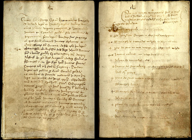 La insaculació o matrícula de ciutadans de les tres "mans" (6) era una forma d'elecció de càrrecs feta per sorteig, que consistia en extreure una de les boletes prèviament introduïdes en un sac, en la selecció de funcionaris polítics, sobretot representants municipals, com a mostra aleatòria d'un grup més gran de candidats. ![]() (Ampliar) - Llibre de matrícula dels insaculats. Girona. 1458. Arxiu Municipal de Girona.
