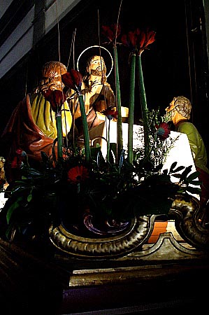 La talla del pas va ser obra de l'escultor gironí Joan Carrera Dellunder (1889-1952), artista que ja havia participat en la creació d'altres passos com el de la Confraria de Sant Isidre i Sant Galderic.Representa un fragment de l'ultim sopar en el que, amb la seva estructura piramidal, s'hi representen en dotze apòstols amb les figures de Sant Joan a la dreta de Jesús, i a la seva esquerra Sant Pere. El 1949 es va encarregar la confecció de la bandera i el penó, que ha acompanyat sempre les sortides de la processó del Divendres Sant. La bandera, per les seves dimensions i el valor de la peça, es troba presidint la sala de juntes de la seu del Gremi de flequers de les comarques gironines.
