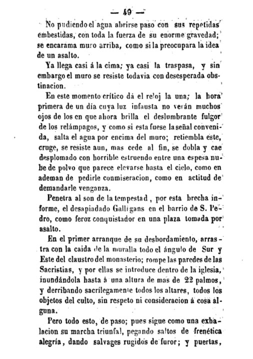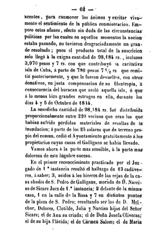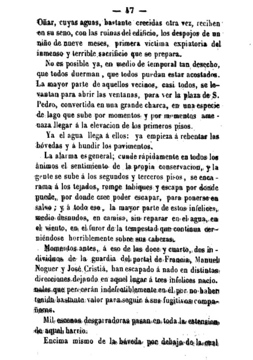 El 1861 Julián de Chía publicava un llibre titulat "Inundaciones de Gerona", en el que passava repàs històric a les principals riuades que havia patit Girona fins la seva redacció. Al llarg de vint-i-set pàgines descriu amb tot detall la tragèdia que va viura l'any 1843 Girona i molt especialment el barri de Sant Pere, on la riuada va provocar entre 115 i 130 morts, segons les fonts. Julián de Chía Yáñez. Historiador nascut a Toledo el 1818 i mort a Mataró el 1898, de família barcelonina, des dels quatre anys residí a Girona. Es va casar amb Concepció Bajandas i Feliu, de Palamós i va tenir un fil, Manel, que seria metge i un notable naturalista. Va ser secretari de l’ajuntament (1863) i arxiver municipal (1872-88). Publicà monografies sobre temes gironins, com "Inundaciones de Gerona" (1861), "El ducado y el principado de Gerona: apuntes históricos" (1881), "La festividad del Corpus en Gerona" (1883), "La música en Gerona" (1886) i "Bandos y bandoleros en Gerona" (1890), possiblement la seva obra més important, editada en tres volums. Bibliografia sobre Julián de Chía: |