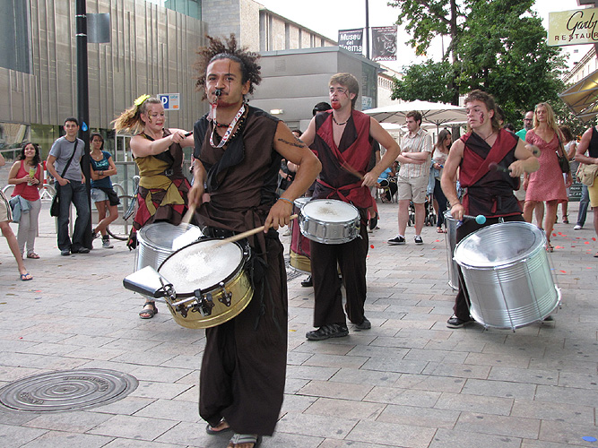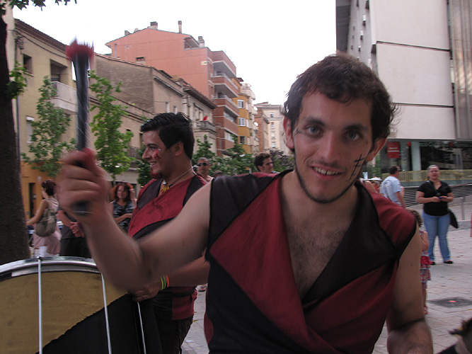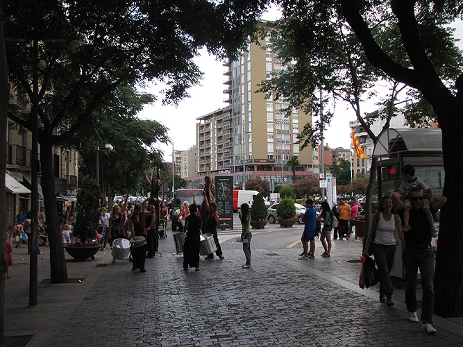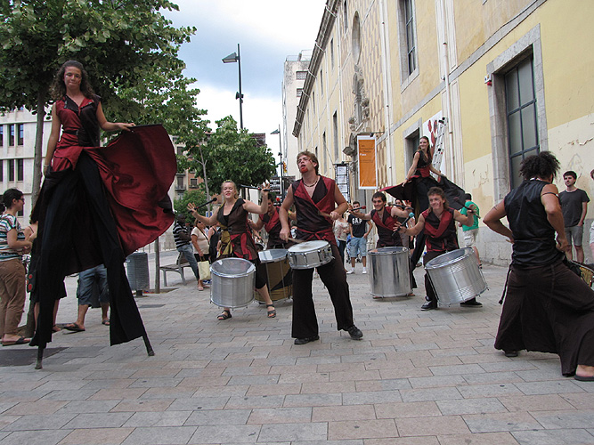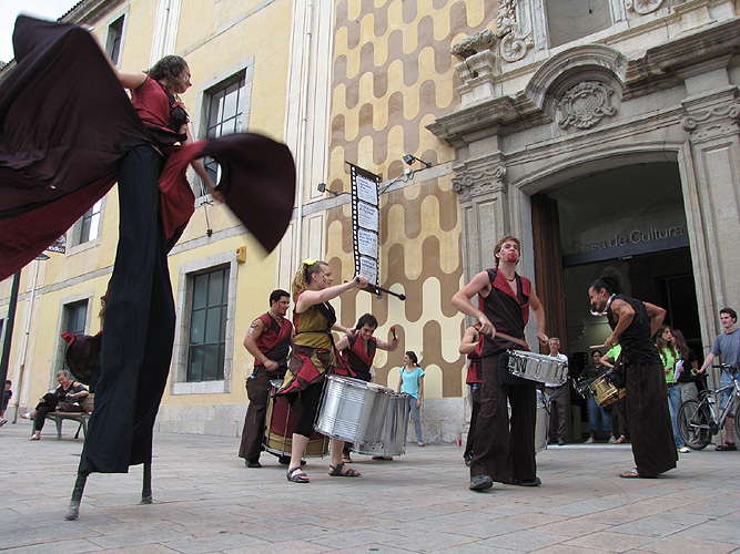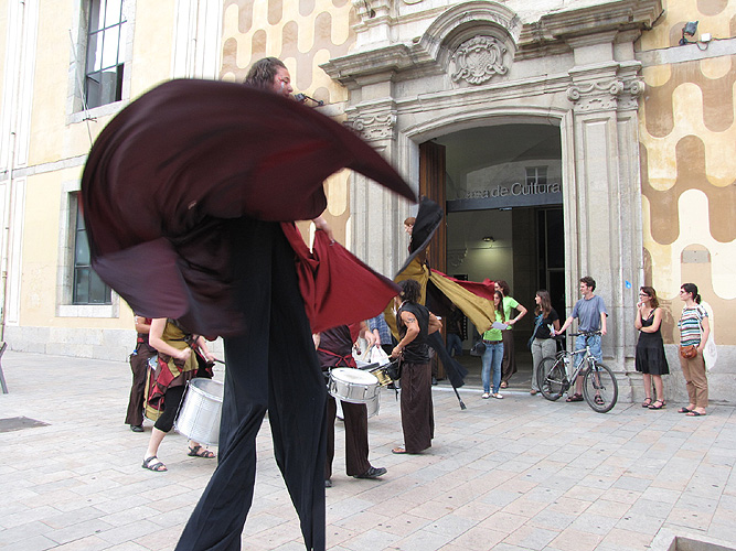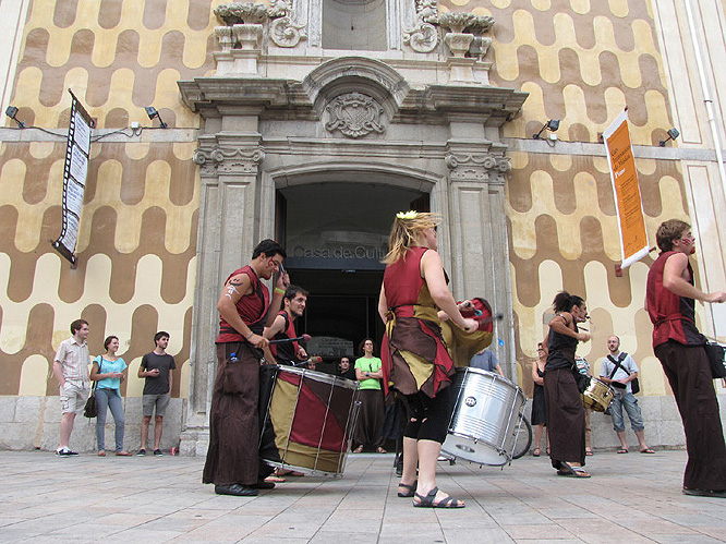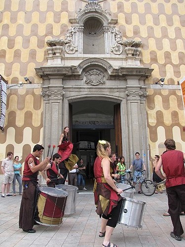 Sortida de la visita guiada de la Casa de Cultura acompanyada pel grup de percusió Xirois |