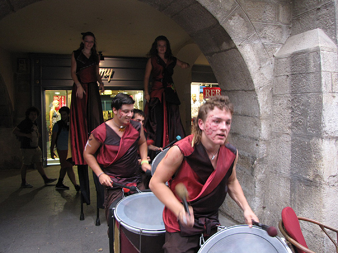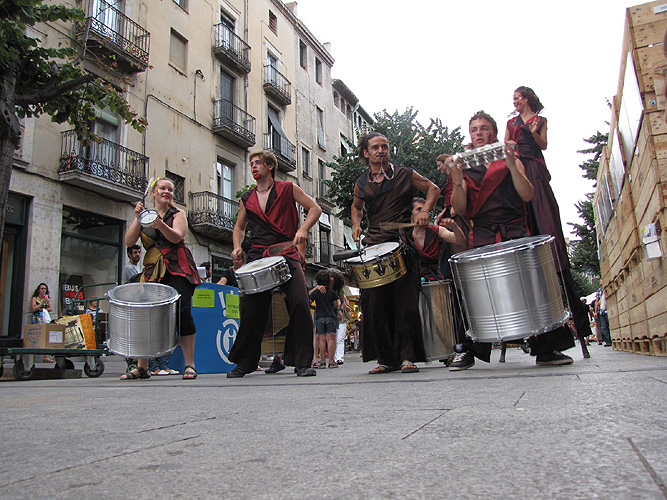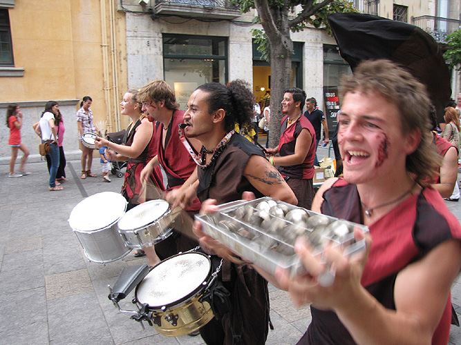 El grup de percusió Xirois a la Rambla de la Llibertat |