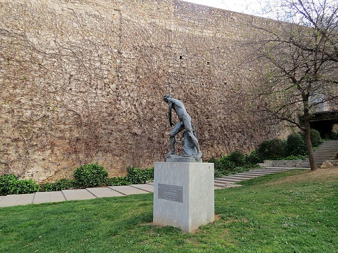 Vista des de la muralla del Jardí de la Infància, amb el monument "Contra l'invasor", de Miquel Blay, en primer terme