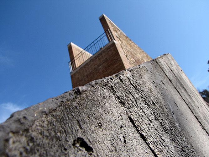 (Ampliar) - Inici de la muralla des del Jardí de la Infància. En primer terme, el refugi antiaeri.