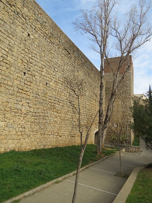 (Ampliar) - Tram de muralla amb la torre del Portal Nou.