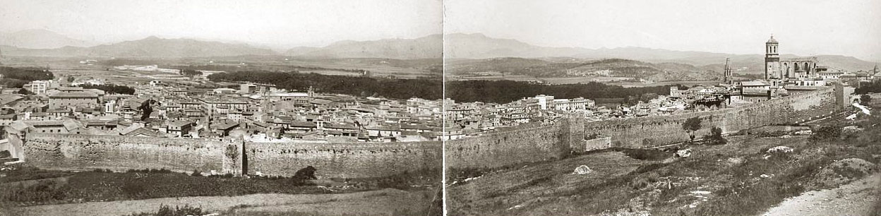 (Ampliar) - Vista panoràmica amb la muralla de les Pedreres en primer terme. 1896-1901. Autor desconegut. CRDI - Ajuntament de Girona.