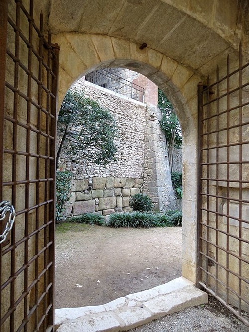 Resseguint els murs, es passa per damunt de l'anomenada porta de la reina Joana o de la Cisterna, un dels accessos a Torre Gironella des dels actuals Jardins dels Alemanys, monumentalitzat a la darreria del segle XV o inicis del XVI, després de la mort de la reina, mare de Ferran el Catòlic. A la dovella central hi ha esculpit l'escut d'armes del rei i de la seva muller Isabel, reina de Castella. És una peça heràldica de molt interès.