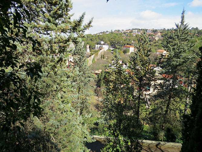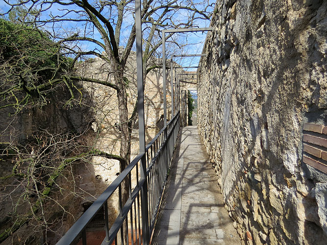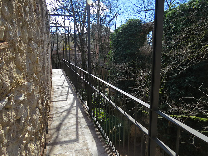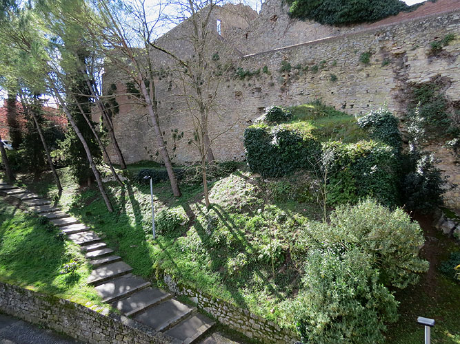 El Passeig Arqueològic des del camí de ronda de la muralla. Al mig de la vegetació s'observa un tam de la muralla de Santa Llúcia