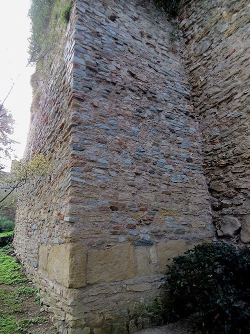 (Ampliar) - Detall de la muralla carolíngia, a tocar la torre Júlia.