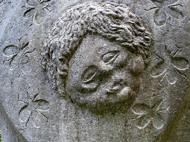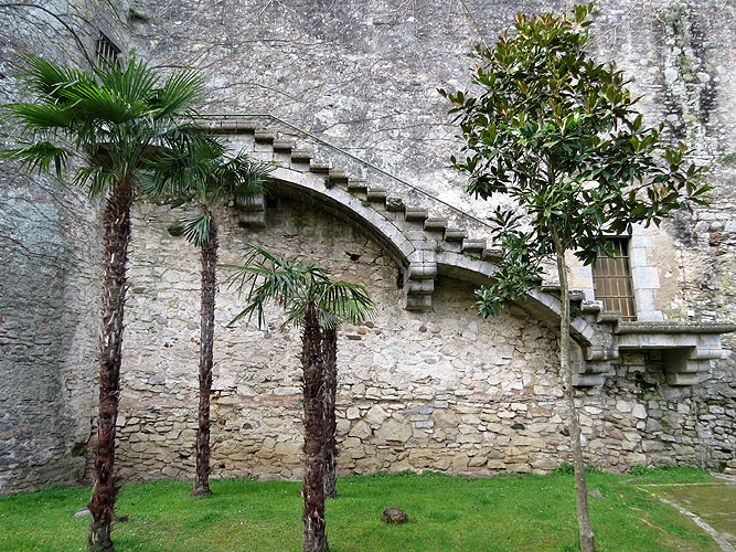 (Ampliar) - Detall del revers de l'estàtua dedicada a la figura llegendària de la Majordoma de Sant Narcís, obra de l'escultor Piculives, situada al peu de la torre Cornèlia.