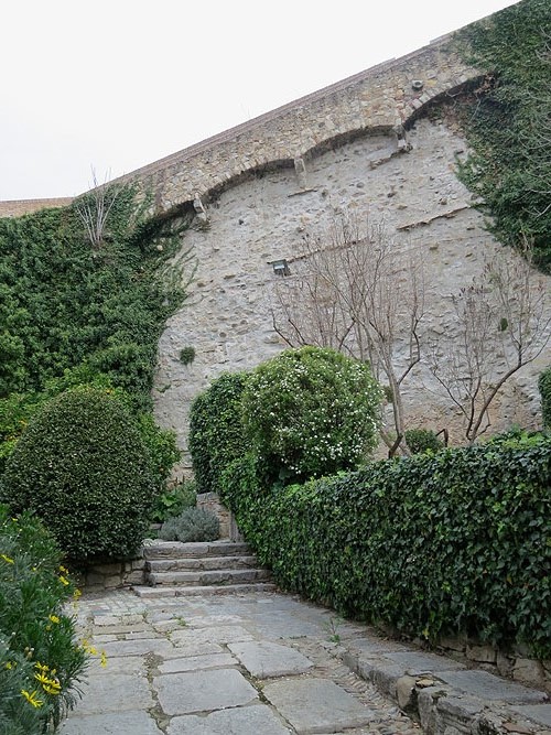 (Ampliar) - La muralla de Santa Llúcia des del jardí de l'Àngel.