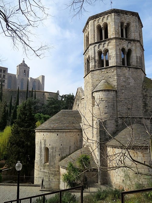 (1) - El burg de Sant Pere és esmentat ja en un document del segle X, i voltava en torn d'un temple que seria substituït al segle XII pel conjunt rom`nic que coneixem avui. Molt a prop de Sant Pere, i situat a la falda de la muntanya de Montjuïc, es formaria al segle XII el petit nucli de població de Santa Eulàlia, a redós de l'església romànica construïda la centúria anterior i coneguda posteriorment com a església de Santa Llúcia. ("La muralla de Girona", David Iglésias i Franch). - Tornar al text