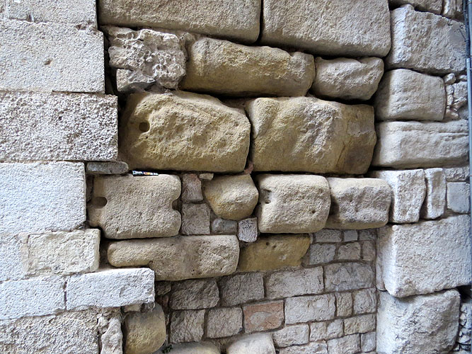 Blocs de pedra sorrenca de la muralla del segle III a Sobreportes