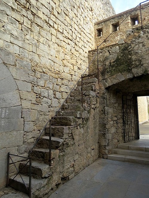 (Ampliar) - Porta exterior de la torre dels Socors i escales al mur espitllerat.