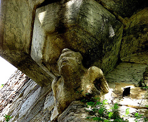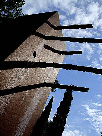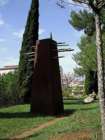Al Jardi de la Muralla, situats per damunt i a continuació del Jardí de l'Infància, hi ha instal·lat un muntatge escultòric, titolat Enigma III, peça que correspon al projecte Enigmes, projecte d'escultures a l'aire lliure impulsat per Joan Oliver. L'objectiu d'aquesta iniciativa de l'artista era situar peces a l'aire lliure "que generessin una tensió entre artifici i naturalesa, entre el que és invenció i el que ens ve donat sense esforç". La del Jardí de la Muralla, l'Enigma III va correspondre a El temple enigmàtic, escultura-instal·lació que va resultar guanyadora de la beca d'Arts Plàstiques convocada per l'Ajuntament de Girona i Interior Promotors d'Art de l'any 1995. Inicialment havia de ser una obra temporal, situada dins les manifestacions de l'exposició Girona Temps de Flors de l'any 1996, en el jardí de Fora Muralla, però que s'hi ha mantingut fins avui. ![]() Al mateix indret, i a l'angle de la muralla damunt el jardí, hi ha una antiga garita, a la base de suport de la qual hi apareix un bust esculpit, element escultòric que Jaume Fabre apunta que pot pertànyer a algun detall escultòric del convent mercedari del Mercadal. |