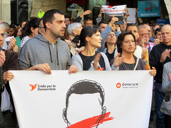 Concentració a la plaça del Vi en protesta per l'empresonament de Cuixart i Sánchez Concentració a la plaça del Vi en protesta per l'empresonament de Cuixart i Sánchez Concentració a la plaça del Vi en protesta per l'empresonament de Cuixart i Sánchez