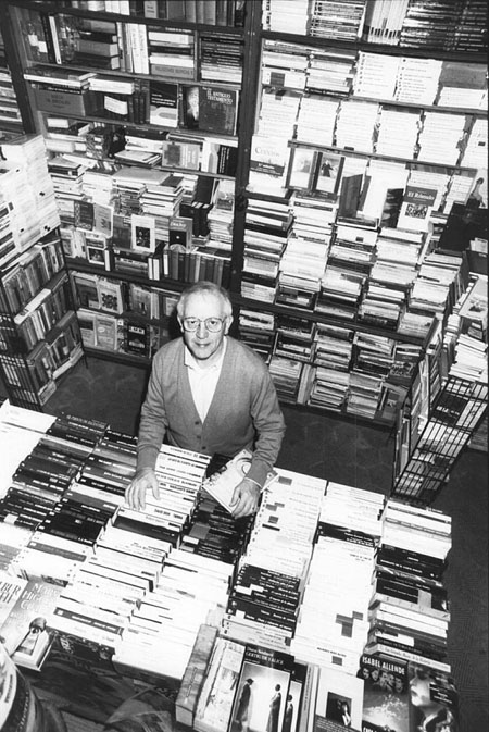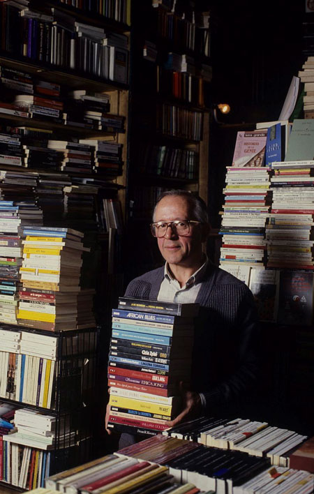 (Ampliar) - Pere Rodeja i Ponsatí a la llibreria, el 1988. Fons El Punt. Col·lecció Ajuntament de Girona.