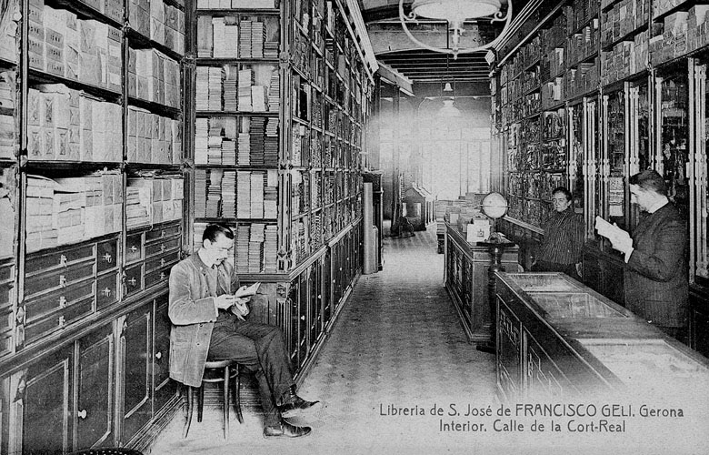(Ampliar) - Interior de la llibreria Geli el 1910. Col. Ajuntament de Girona.