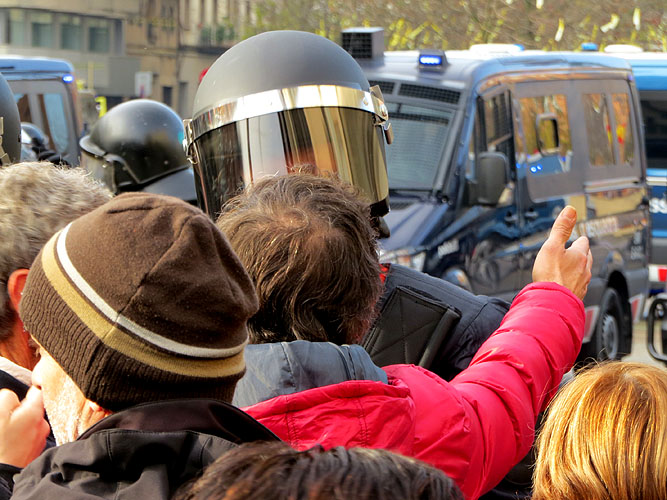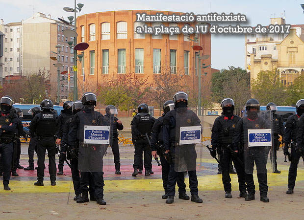 El dijous 6 de desembre 2018, i com a protesta d'un acte polític de la plataforma Borbònia amb el suport de Vox, PxC i el PP, a la plaça de l'U d'octubre del 2017, va tenir lloc una manifestació de protesta, a la mateixa plaça, separades les dues concentracions pels Mossos d'Esquadra. Va acabar amb càrregues policials, ferits, un detingut i un investigat. Els Mossos van carregar dues vegades; el primer cop quan van tombar les tanques col·locades al mig de la plaça, i el segon a la zona del carrer Eiximenis, on va aparèixer Álvaro Marichalar, que assistia a l'acte a favor de la Constitució que comptava amb el suport de Vox.