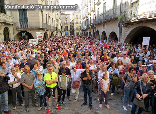 El diumenge 15 d'octubre 2017, prop de 2.000 persones es varen concentrar a la plaça del Vi de Girona per demanar al president de la Generalitat, Carles Puigdemont, i a tot el govern que no fes "cap pas enrere", i que seguissin "treballant per la república". L'acte estava convocat per Girona vota, amb el suport de les entitats sobiranistes. La concentració, durant la qual es varen pronunciar diversos parlaments i manifestos, va durar una mitja hora i va acabar amb el cant de "Els Segadors", i just després alguns dels concentrats varen fer una manifestació fins a la Subdelegació del govern espanyol a Girona, on es va llegir un manifest en contra de la repressió policial de l'1-O.