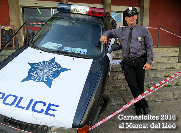 Durant el dos dies que ha durat la simpàtica activitat, a les diverses parades, ambientades de forma temàtica, s'hi poden trobar els venedors disfressats de policies, presos, mafiosos, ballarines, jugadors, etc. i a l'entrada del Mercat, un espectacular cotxe de la policia encastat a les escales.