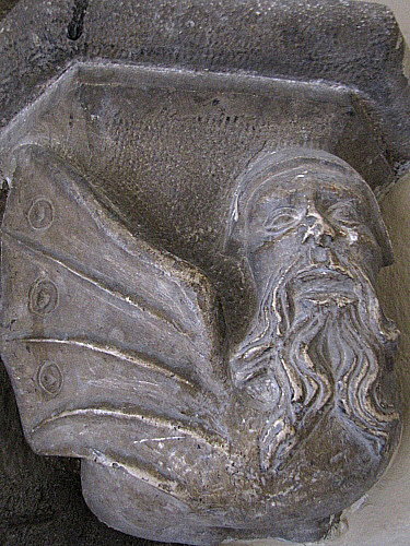 Sota les voltes de la Rambla s'hi poden observar tres mènsules amb una imagineria ben curiosa. En una s'hi representa una figura amb barret, meitat home meitat cargol, que toca una mena de flauta; en una altra, un home que toca un sac de gemecs, i, en la tercera, una testa amb una venerable barba molt llarga i ales de vampir.
