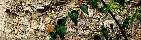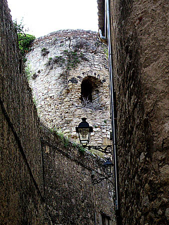 ![]() La torre Júlia, al Passeig Arqueològic al límit del primer eixample de la ciutat. Signatura de Carlemany. Part baixa de la torre de defensa bastida durant l'època carolingia amb material de l'anterior construcció romana, al carrer Ballesteries. Torre de Cabrera-Requesens, al carrer de l'Escola Pia. Fragment de muralla carolingia al Passeig Arqueològic en la que s'aprecien els diversos materials emprats. |