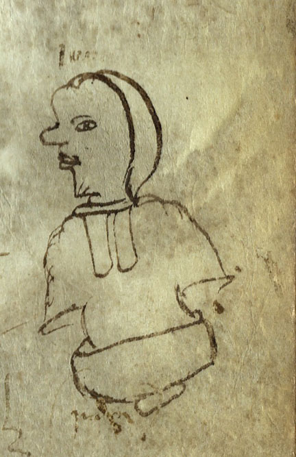 Malgrat molts períodes de coexistència relativament pac&iacuute;fica, al llarg dels segles medievals es va desplegar la violència, tant física com psicològica, contra les persones jueves; són nombroses les representacions difamants i caricaturesques en retaules i obres d'art, o als llibres dels notaris. Igualment es van generalitzar les acusacions infamants contra la població jueva, com la de fer sacrilegi amb hòsties consagrades, la d'enverinar les aigües per provocar epidèmies, o la de matar ritualment criatures cristianes. ![]() Jueu amb rodella. Manual d'Acords del Consell de la Ciutat. Girona, 1449 - (Ampliar)