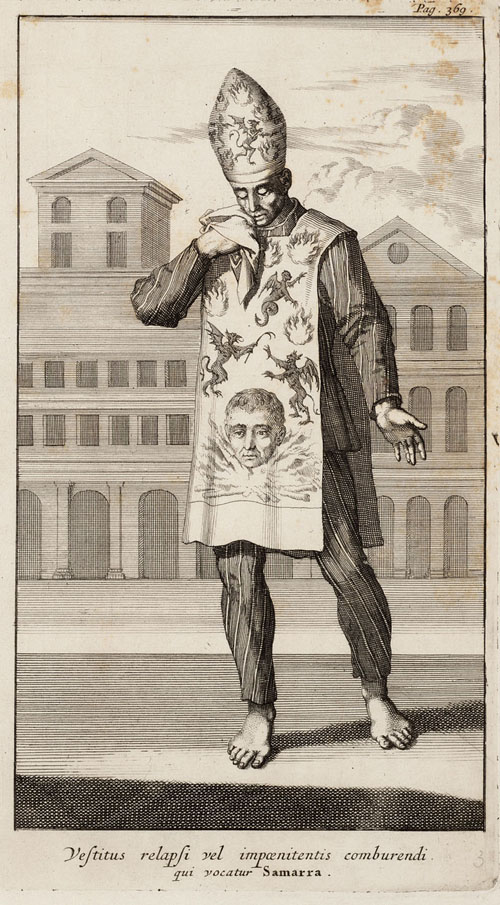![]() ![]() Vestits medievals jueus. Feltre i lli. Reproducció segons manuscrits il·luminats medievals - (Ampliar) ![]() Jueu dins una estrella de David. Liber Iudeorum. Segle XV. Arxiu Històric comarcal de Puigcerdà - (Ampliar) ![]() Pregó que ordena als jueus i jueves de Mallorca a lluir una roda distintiva. Mallorca, 22 de novembre de 1393 - (Ampliar) ![]() Liber Iudeorum, 1314, portada. Batllia de Cardona. Biblioteca de Catalunya - (Ampliar) ![]() (Veure sencer) - Auto de Fe presidido por Santo Domingo de Guzmán, Pedro Berruguete, ca. 1500. Museo del Prado ![]() Liber Regestum Negotiorum Santi Offitii Insquisitionis. Segle XVI. Girona - (Ampliar) ![]() Escut de la casa o seu de la Inquisició a Girona. Pedra. Segle XVIII - (Ampliar) ![]() Detall del retaule de Sant Feliu. Joan de Borgonya, 1518-1521. Els jueus eren pressionats psicològicament perquè es convertís, amb sermons aferrissats que els predicadors feien, fins i tot, dins les sinagogues - (Ampliar) ![]() La gramalleta dels penitents. Gravat de "Historia Inquisitionis" de Philipp van Limborch, Amsterdam 1692 - (Ampliar) |