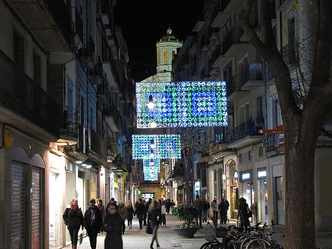 Imatges d'activitats, esdeveniments diversos, i de la ciutat de Girona, durant les Festes de Nadal 2013: atraccions infantils, música i nadales al carrer, aparadors ambientats amb motius nadalencs, pessebres, etc.