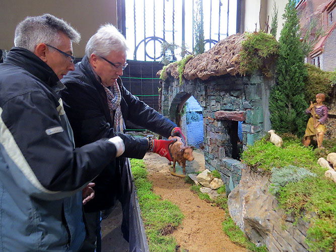 La construcció del pessebre per l'Associació de Pessebristes de Girona