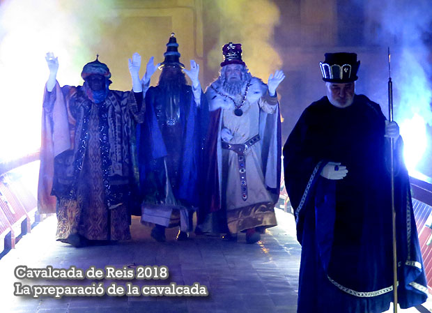 El divendres 5 de gener 2018 va tenir lloc la tradicional arribada dels Reis d'Orient a la ciutat de Girona. Després de la precavalcada de bandes de música i els heralds de la Ciutat pels carrers del Barri Vell de Girona, i les activitats al Campament Reial situat als Jardins de la Muralla, els components de la Cavalcada varen travessar l'Onyar per dirigir-se on els esperaven les carrosses i carros per iniciar la desfilada pels carrers de la ciutat.
