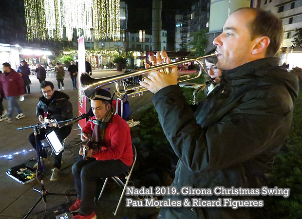 Dins la programació de música al carrer "Girona Christmas Swing" durant les festes nadalenques, el dissabte 28 de desembre 2019 va actuar la formació Pau Morales & Ricard Figueres, a la plaça Miquel Santaló. Varen oferir un concert de swing per apropar l’esperit nadalenc i el lindy hop a través dels temes de jazz i swing de totes les èpoques a tot el públic gironí amant d’aquest estil.