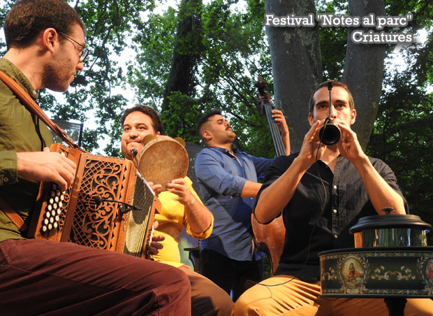 El dimecres 21 de juliol "Criatures" va presentar el treball "Praxinoscopi" amb el que va acompanyar el públic a viatjar pel món de la senzillesa, la naturalitat i la delicadesa. El so transformat de la gralla i de l'acordió, acompanyats del contrabaix i les percussions, transporta l’espectador a un món imaginari on tot gira al voltant de la música d'arrel. Les melodies que brollen dels instruments els converteixen en criatures que juguen a buscar un so cambrístic a les sonoritats tan característiques de la nostra terra.