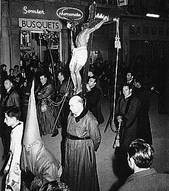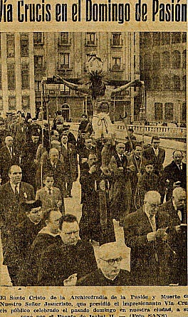 Esquerra: Crist de l'Arxiconfraria de la Passio i Mort en una notícia del diari "Los Sitios", 1962 aprox. | Dreta: Divendres Sant, 1954.