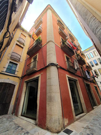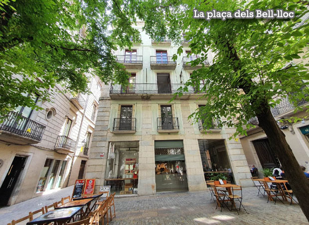 La plaça de Bell-lloc, propera a la plaça del Vi, hi és comunicada pel carrer Nou del Teatre; per la banda oposada compta amb un carreró que la connecta amb la travessia de l'Auriga, via que pertany a la mateixa plaça. Les referències del nomenclator, des del segle XIV, fan referència a la família gironina que hi tenia el seu casal: els Bell-lloc. L'actual plaça dels Bell-lloc, al segle XIV, era anomenada "plaça del Pou", nom que surt documentat el 1381. La família de ciutadans dels Bell-lloc va donar molts jurats a la ciutat al llarg d'aquell segle. El vell casal familiar, anterior al de la plaça, era al Mercadal fins que l'any 1302 es traslladaren a l'altra banda del riu Onyar. La casa principal es documenta, el 1535, al carrer d'en Bell-lloc.
