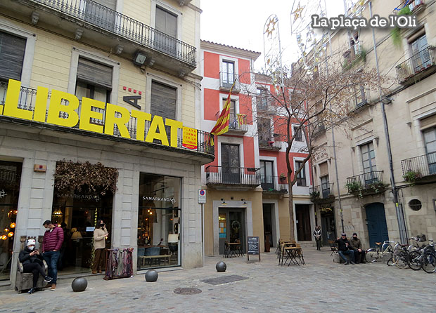 Situada al Barri Velí, és la cruïlla d'uns quants carrers: hi conflueixen el carrer Ciutadans, el carrer del Sac, la pujada de Sant Domènec, el carrer d'en Bonaventura Carreras i Peralta, i el carrer de la Cort Reial. En els segles IX i X, al lloc on hi ha la plaça de l'Oli només hi havia la llera del riu Onyar que hi formava un meandre, forçat a decantar-se a l'oest cap els Quatre Cantons i les Ballesteries (J. Marquès). L'indret començà a edificar-se a partir del segle XII , si bé no va ser fins al segle següent quan prengué una personalitat definida. L'any 1284 la documentació municipal s'hi refereix com a "plaça dels cavallers", per la procedència social dels seus estadants. El nom arrelà un bon temps, atès que apareix també el 1418 quan s'assenyala el recorregut d'una processó i també el 1552. Paral·lelament el nom de la plaça de l'Oli començà també a documentar-se . El nom de plaça de l'Oli l'any 1410 era compartit amb el de plaça dels Cavallers i amb el de "Sabateria Vella".