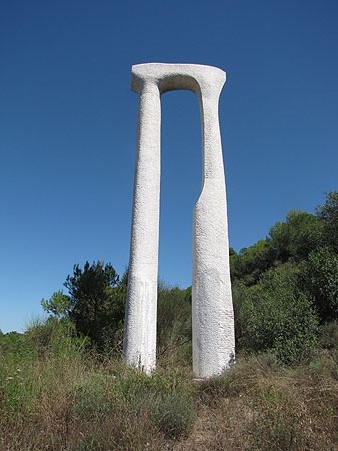 Passant per la variant de l'N-II a Sant Daniel, o seguint a peu la ruta del castell de Sant Miquel, destaca l'aparició d'aquesta escultura, d'un blanc immaculat, damunt una petita elevació del terreny. Es tracta d'un encàc que el Ministeri d'Obres Públiques va fer a l'escultor Bonaventura Ansón el 1993, una peça per la nova variant de Sant Daniel. L'artista va dissenyar una estructura que recorda una porta de grans dimensions, esvelta, imponent i de formes irregulars. La va executar amb marbre de Carrara, un dels materials més valorats pels escultors.