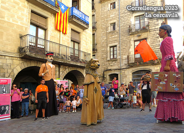 El dissabte 30 de setembre 2023 va tenir lloc a la plaça del Vi la vint-i-setena edició de l'esdeveniment Correllengua 2023 a Girona, activitat que treballa per a la difusió de l’ús de la llengua i la promoció de la cultura popular de les terres de parla catalana, des d’una aposta lúdica, festiva, participativa i transversal. Es va iniciar amb una cercavila a càrrec del grup de percussió Caixa de Trons de Girona, des de la plaça de Santa Susanna, on hi ha un poema corpori de Joan Brossa, titulat A de Cinema (1999), a qui es ret homenatge en aquesta edició. A la plaça del Vi s'ha pogut jugar a jocs tradicionals catalans i s'hi ha llegit el Manifest del Correllengua. A la tarda hi hagué la tradicional ballada de sardanes.
