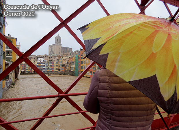 Els dies 21, 23 i 23 de gener 2020, i degut a la pluja provocada per la borrasca Gloria, amb una precipitació acumulada de 235 litres per metre quadrat, el cabal dels rius es va disparar a les comarques de Girona. Aquesta situació va fer que a primera hora del matí del dimarts 21, l'Onyar al seu pas per Girona ja superés els 530 metres cúbics per segons. La situació no va afluaixar, atès que el 22 Sau i Susqueda varen obrir comportes, alliberant cabal progressivament, i aixó va augmentar el cabal del Ter i, de retruc, el de l'Onyar.