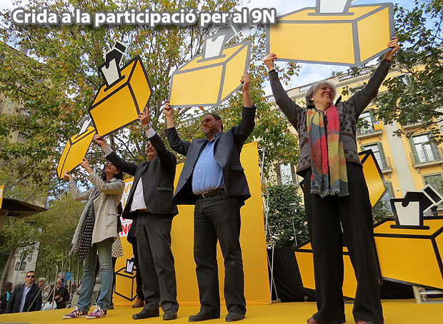 Síntesi: El dissabte 8 de novembre 2014 va tenir lloc a la plaça de la Independència un acte de crida a la participació a les votacions del 9N, amb l'eslògan "Vull ser lliure. Vull un nou país", en la que van intervenir el president d'ERC, Oriol Junqueras, Marta Rovira, Secretària General d'ERC, i l'alcaldable pel mateix partit a l'Ajuntament de Girona, Maria Mercè Roca. Així, ERC va tancar la campanya en aquest acte a Girona. Un miler de persones varen omplir la plaça per participar en l'acte que va comptar amb la presència i recolzament de representants de l’Aliança Lliure Europea, com François Alfonsi, militant i que va ser secretari general de la unió del poble Cors.