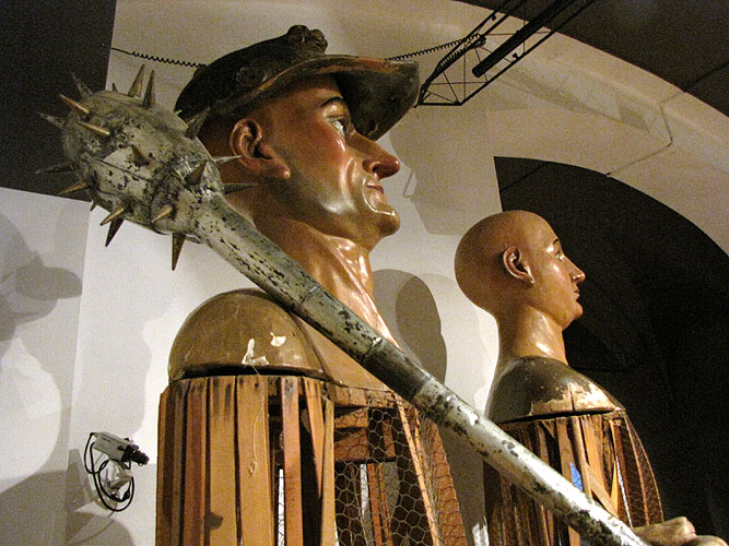 - Els gegants de Girona, d'Olot i els de Torroella de Montgrí durant la visita guiada a l'exposició.