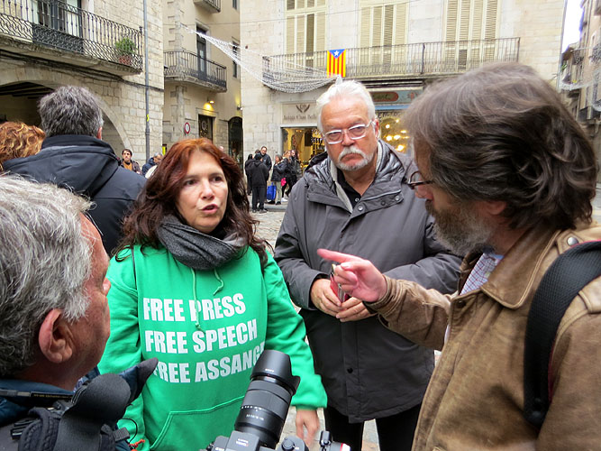 Síntesi: El dissabte 10 de desembre 2022 va tenir lloc a la plaça del Vi una acció organitzada pel moviment Free Assange Wave, que treballa en l’àmbit global per l’alliberament del periodista i fundador de WikiLeaks, una acció mundial amb motiu del Dia Internacional dels Drets Humans, amb el lema “Alça’t en lloc d’asseure’t com els altres” consistent en, després dels discursos de Toni Strubell i Salvador Ribot, concentrar-se amb una cadira i, a l’ordre d’un àudio enregistrat per Assange mateix, enfilar-se a la cadira i mostrar paraules clau impreses en uns cartells. Assange s'enfronta a una pena de fins a 175 anys de presó als Estats Units.