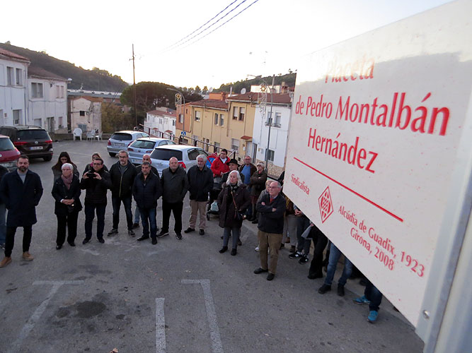 El dijous 23 de novembre 2023 l’Ajuntament de Girona va denominar un espai del barri de Vila-roja amb el nom del sindicalista Pedro Montalbán Hernández (1923-2008). Es tracta de la placeta situada a l'encreuament de la pujada del Primer de Maig i el carrer de la Font. L'acte es va iniciar amb la descoberta de la placa i va seguir amb les intervencions de l’alcalde de Girona, Lluc Salellas i Vilar; de la secretària general de Comissions Obreres, Belen López, i de la néta de Pedro Montalbán. També hi va assistir el tinent d’alcaldia de l’Ajuntament de Girona Quim Ayats i Bartrina.