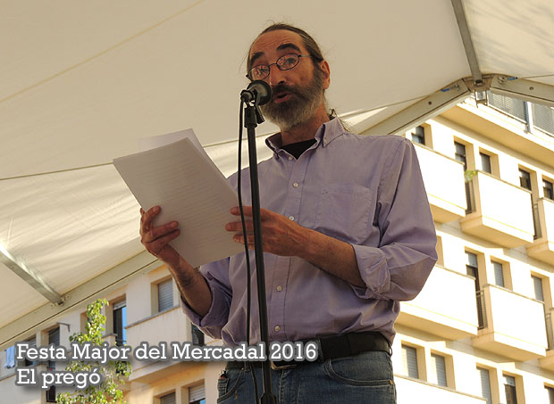 Síntesi: Els dies 27, 28 i 29 de maig 2016 se celebra la Festa Major del barri del Mercadal de Girona. Dins les diverses activitats programades, el divendres 27 es va donar el tret de sortida amb el pregó de la Festa, que en aquesta edició ha anat a càrrec del veí del barri Fèlix Xunclà i Tubert, pregó del que n'oferim una adaptació. La lectura del pregó va anar precedida d'una cercavila i una batucada que va finalitzar a la plaça de Santa Susanna.