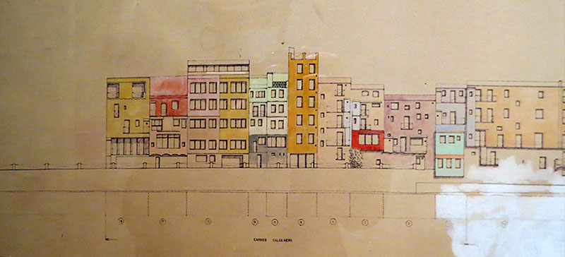 (Ampliar) - Projecte complet Cases del riu. 1983. Aquarel·la sobre paper. Fragment. Col·lecció particular. |